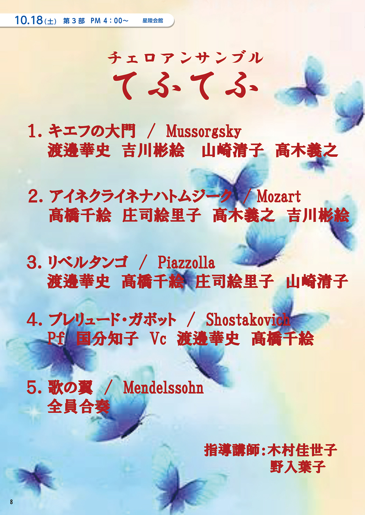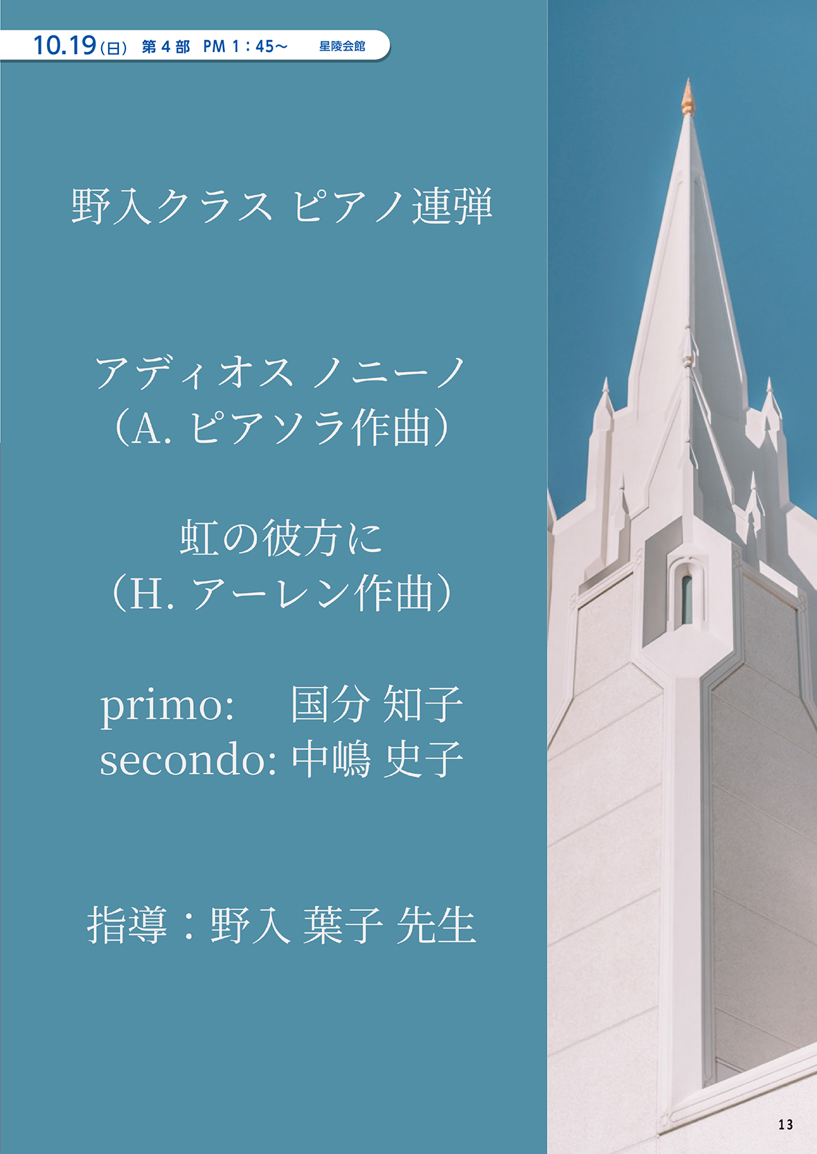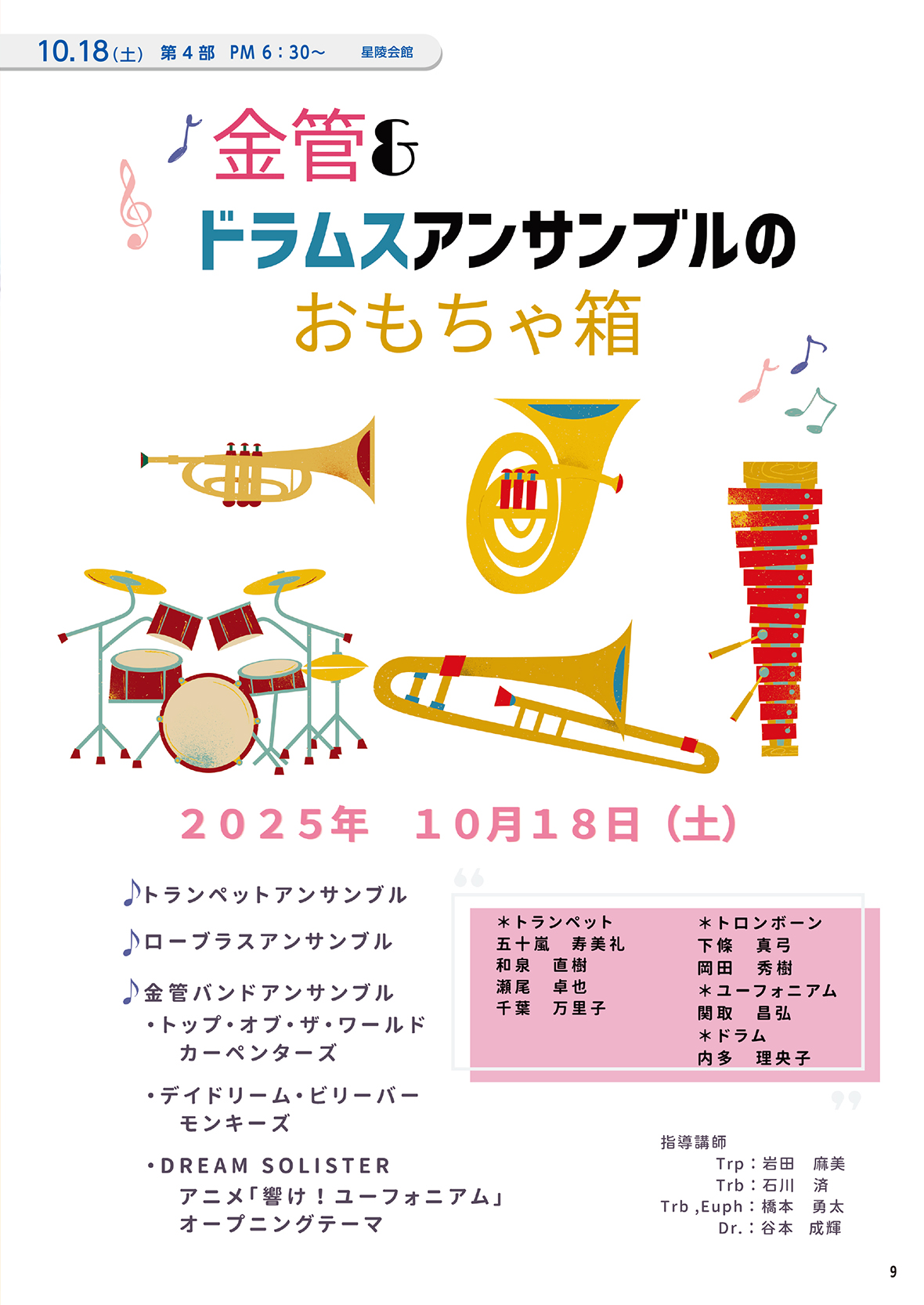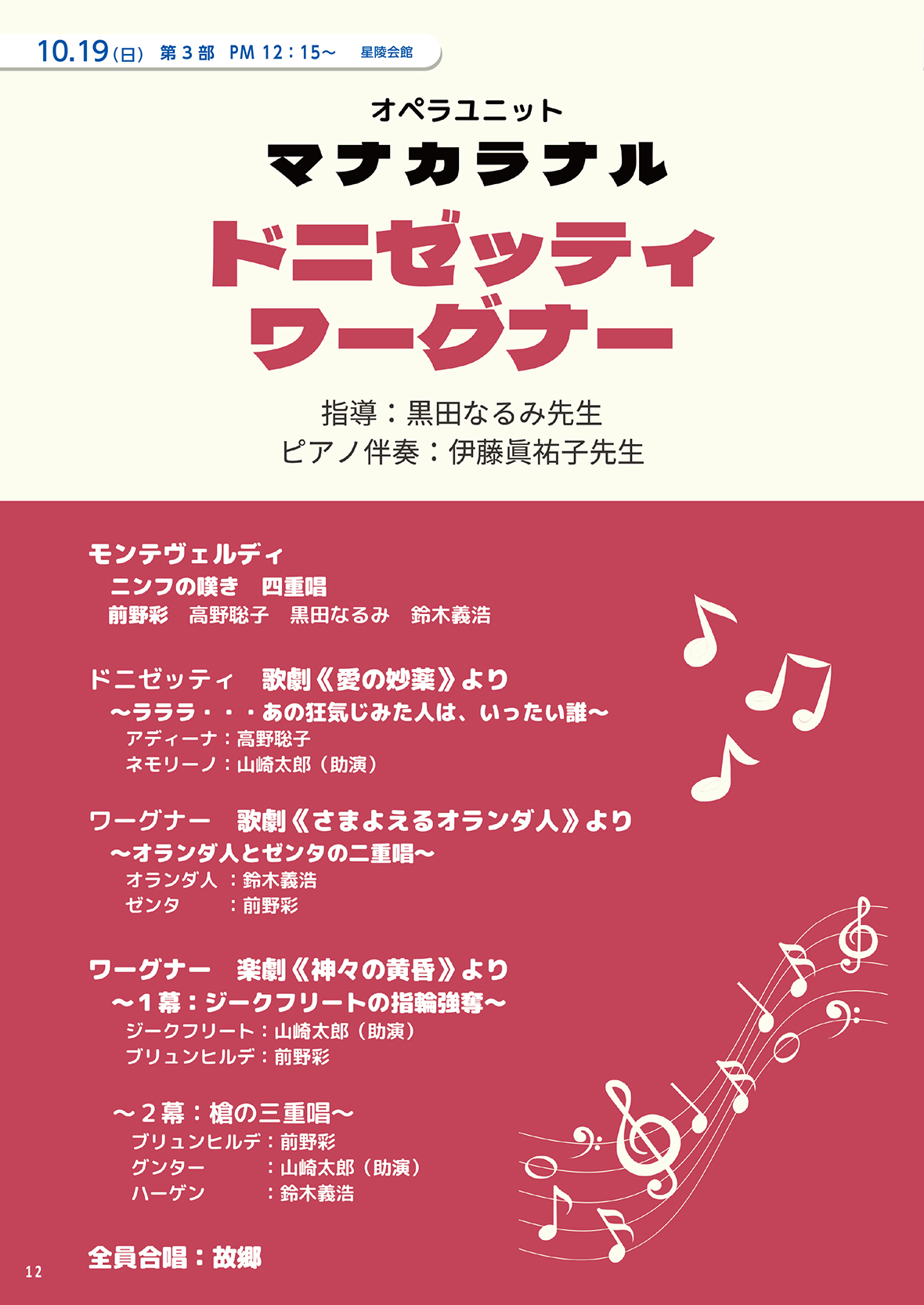アルル アンサンブル発表会 アルル音楽教室 2025年 10月 4日(土) 練馬文化センター 10月 18日(土) 星陵会館 10月 19日(日) 星陵会館 10月 26日(日) 星陵会館 入場無料 左右2ぺージが一緒になっています。 横にスクロール